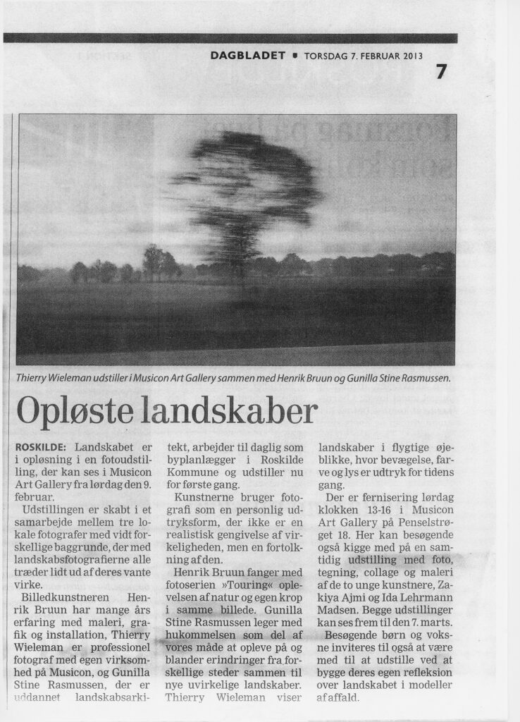 - Craquements de bois (1990) – Photographie / installation. – Galeries AV-ART Copenhague DK.
