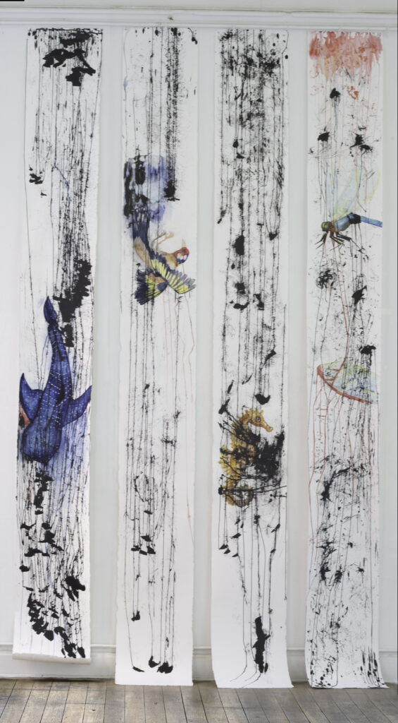 « En Disparition » met en peinture la situation préoccupante des êtres vivants menacés d’extinction, en s’intéressant tout particulièrement aux espèces présentes en Europe.