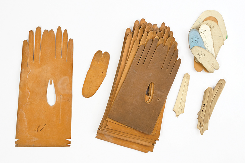 Patrons de découpe de gants / Handschoenmodellen, vers / rond 1900, carton / karton, coll. A. Askenasi-Neuckens. Z4, V4ro, B5-7