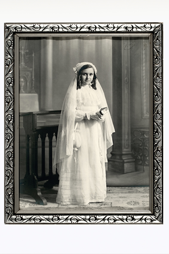 Henriette Stormacq en robe de communiante / Henriette Stormacq in communiekleed, photo / foto, 1939, MoMuse, don / gift Henriette Stormacq V 2011.255. Z2, C10V, 2